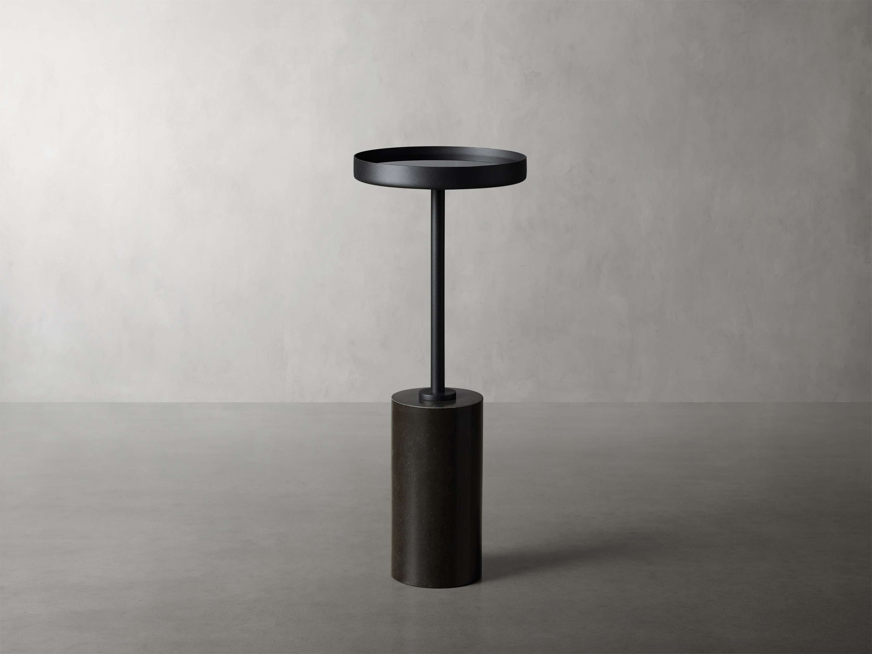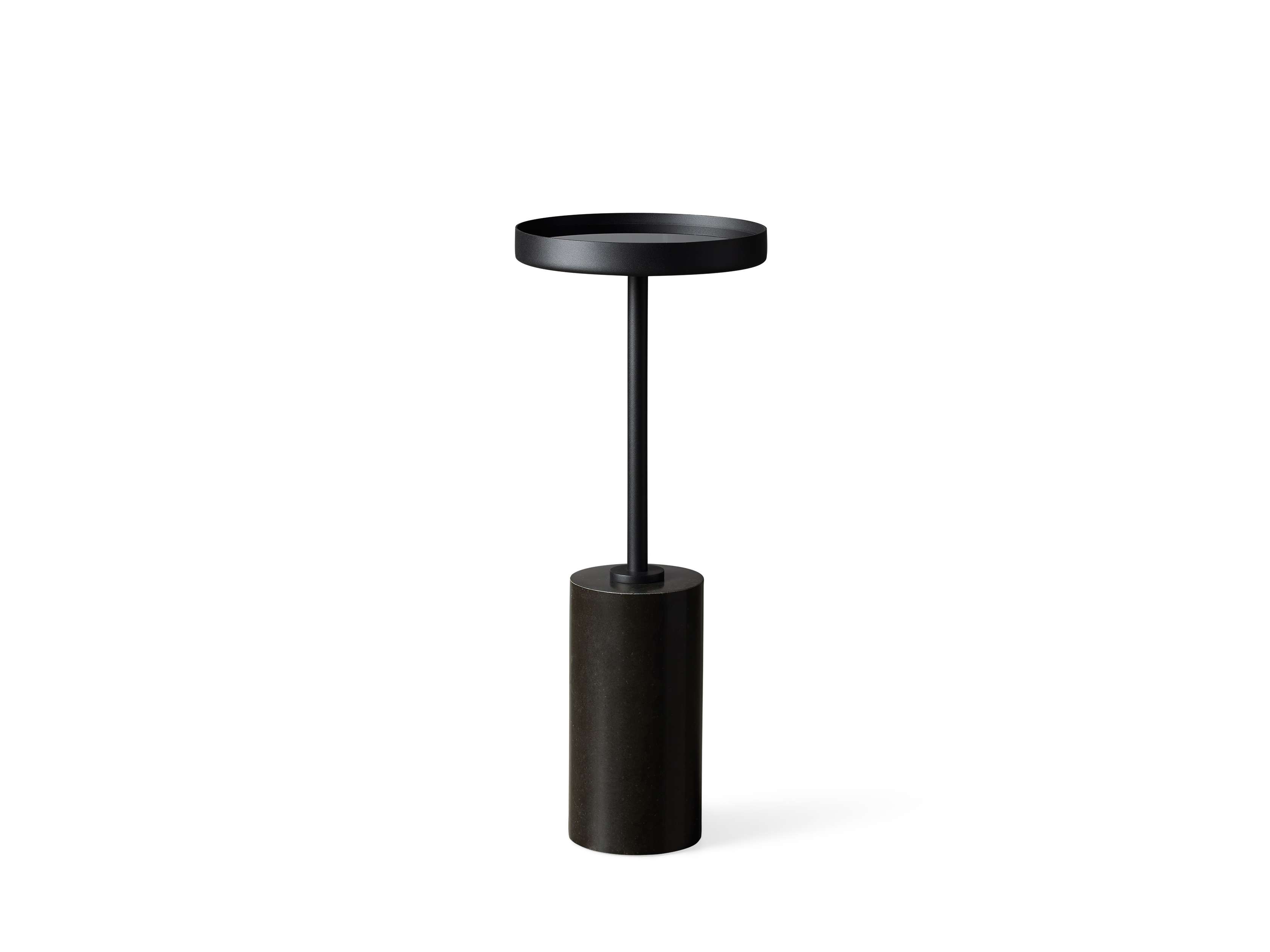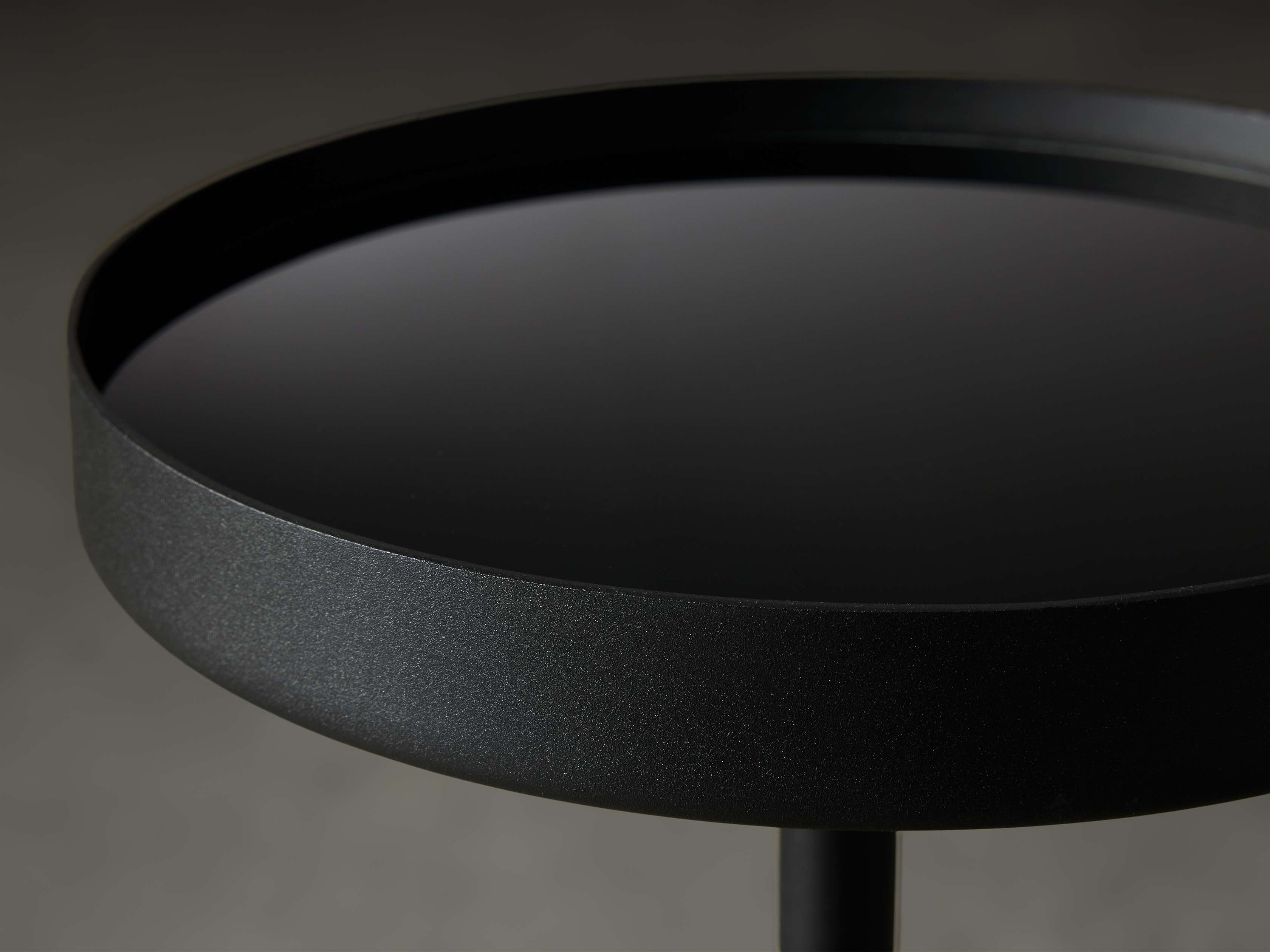 - Black table includes a black mirrored tabletop tray.