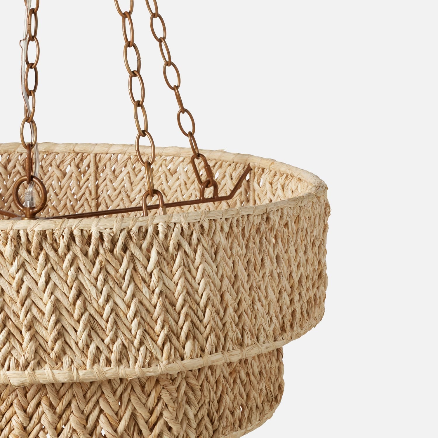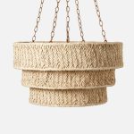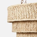 - Traditional elegance meets relaxed style in our Sibyl, a three-tiered chandelier with natural raffia shades, woven in a modern, textured chevron pattern.