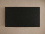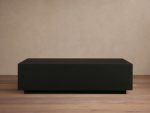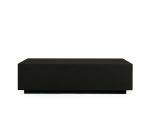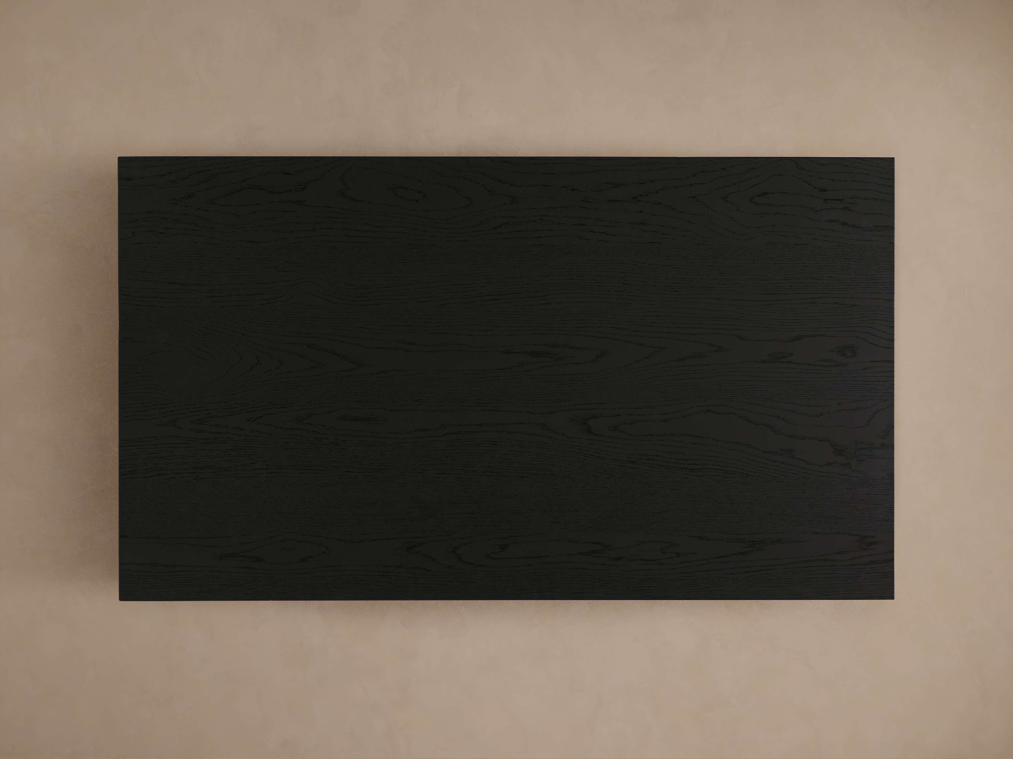 - Tabletop rests upon a black, wooden plinth-style base.
