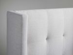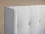 - Headboard features beautiful box-tufted detailing creating a plush, luxurious aesthetic.
